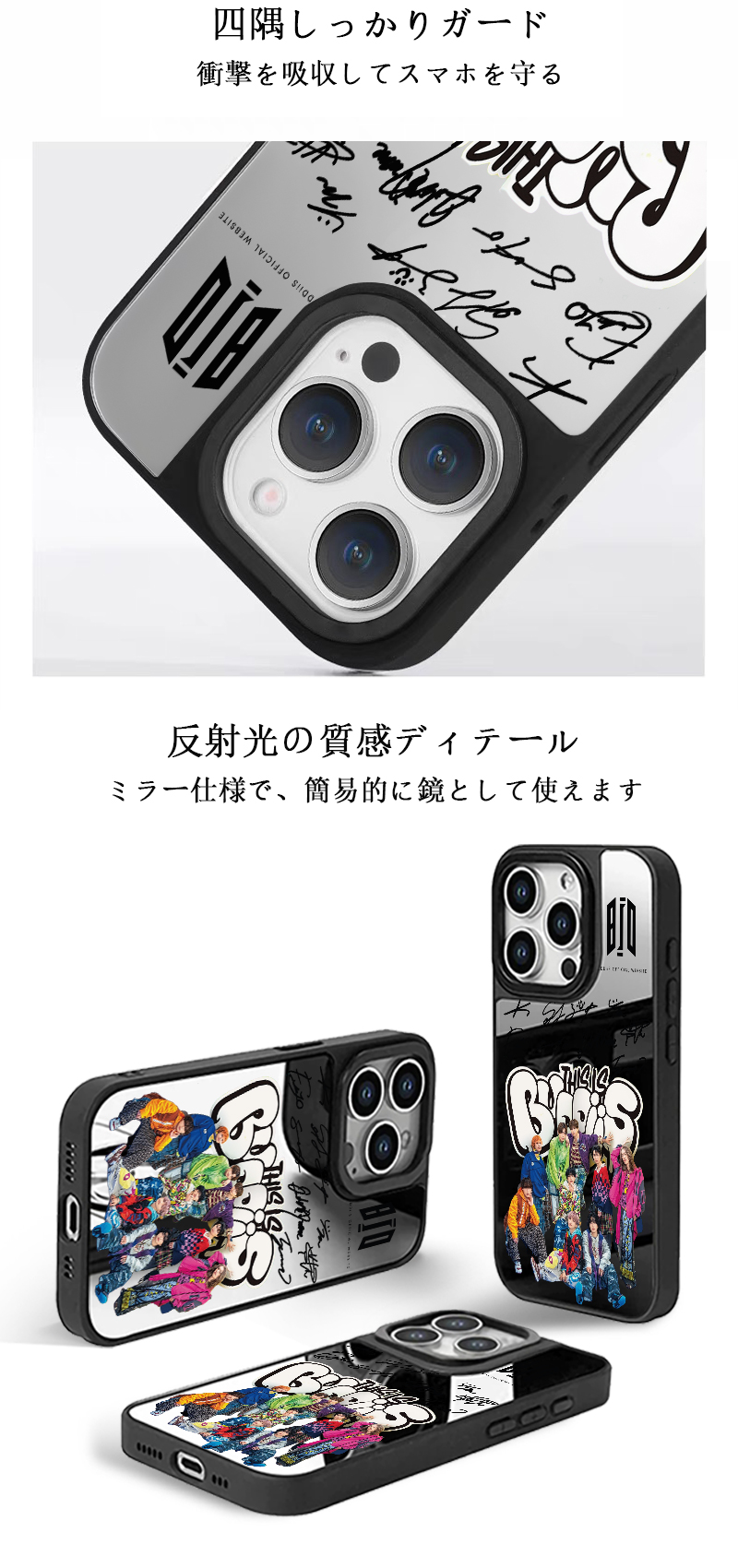 高精細印刷によりデザインが色あせしにくく、鮮明な状態を長期間キープ。日常使い・推し活どちらにも適したケースです。